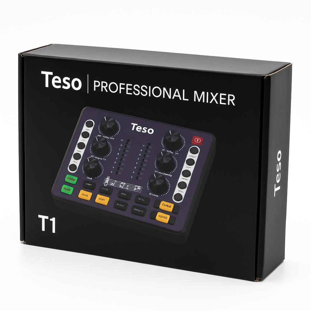 TESO Professional Mixer T1 – Compact and reliable audio mixer for streamers, podcasters, and small audio setups. Offers clean sound and easy controls.