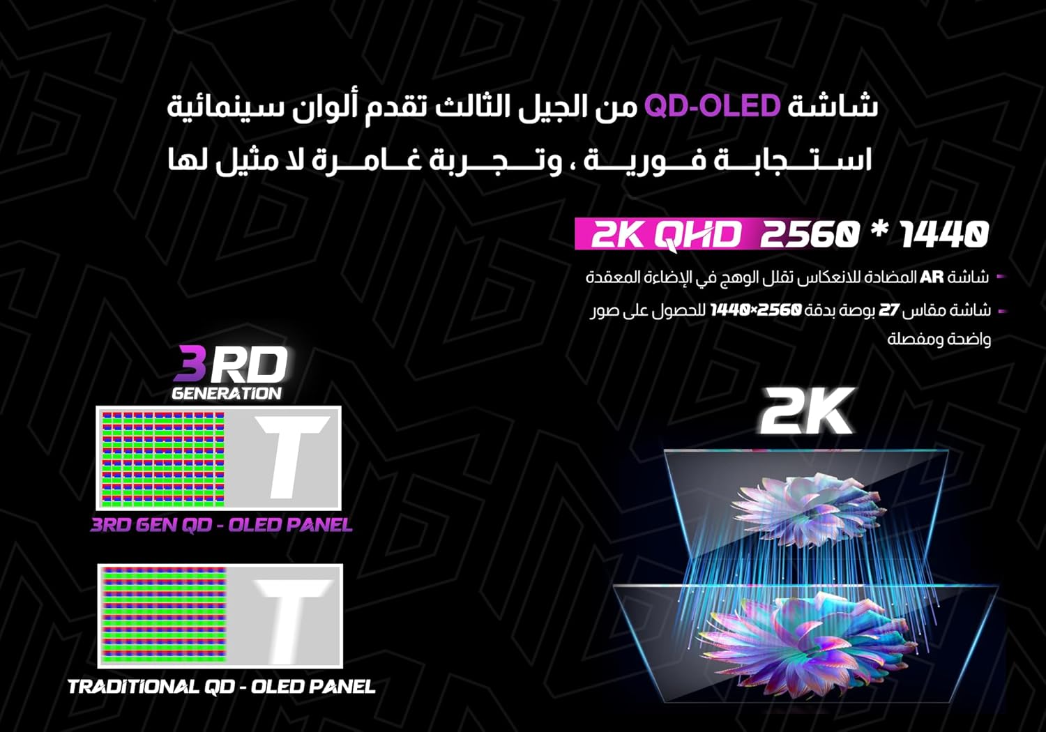 | Majesty 27 Inch OLED Gaming Monitor 2K QHD | QD-OLED | 280Hz | 0.03ms | HDR400 | 157% sRGB | 10-Bit | G-SYNC & FreeSync | HDMI 2.1 | DP & USB-C | VESA | Built-in Speakers | RGB Rear | Flexible Stand remove | شاشة GIGABYTE GS27QA-EK مقاس 27 بوصة IPS دقة 2K 180Hz remove | شاشة SAMSUNG Odyssey G3 مقاس 24 بوصة FHD 180Hz remove | MSI MAG 276 CXF 280HZ 0.5MS HDR remove | شاشة ACER VG270S3 مقاس 27 بوصة 2K موديل AE.UM.HV0EE.302 remove | شاشة DELL E2425H مقاس 24 بوصة FHD 75Hz مدخل DisplayPort remove | |||||||||||||||||||||||||