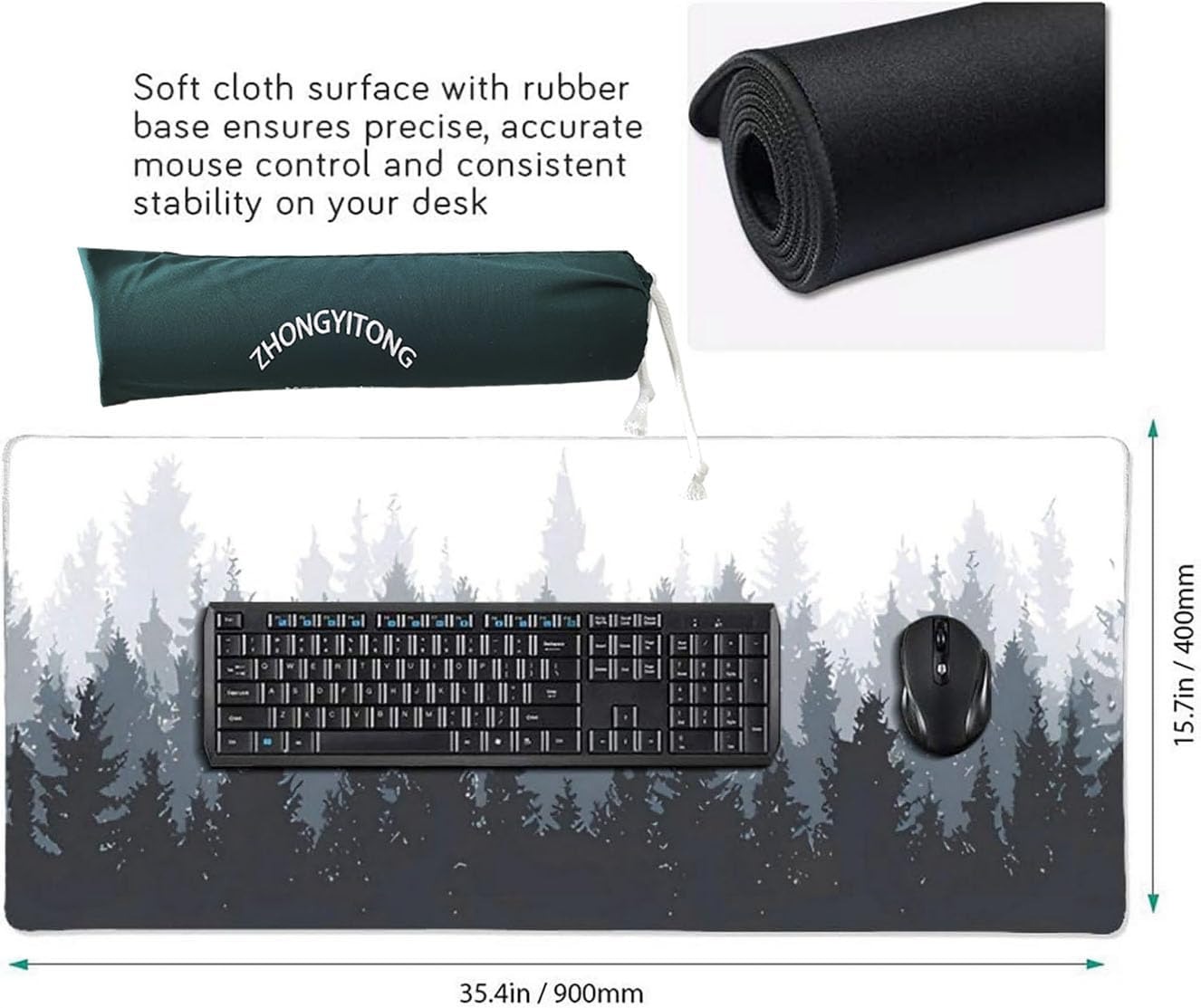 mouse padقاعدة ماوس كبيرة مطاطية غير قابلة للانزلاق للألعاب - حواف مخيطة غطاء قماشي عالي الجودة مكتب ممتدة للوحة مفاتيح والماوس صورة ظلية بنمط غابةة