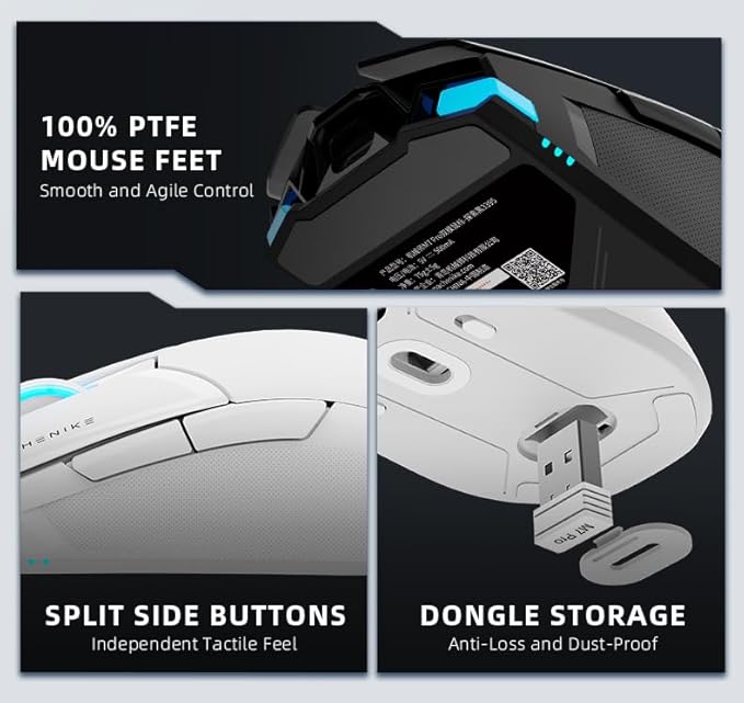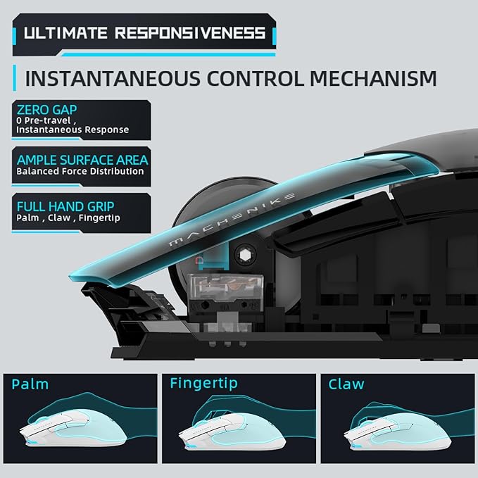 MACHENIKE M7 Pro Gaming Mouse (PAW 3104 Sensor) Wireless/Wired RGB Computer Mouse with 8000 DPI and 6 Programmable Buttons, High Performance Lightweight Gaming Mouse for PC/Mac - White