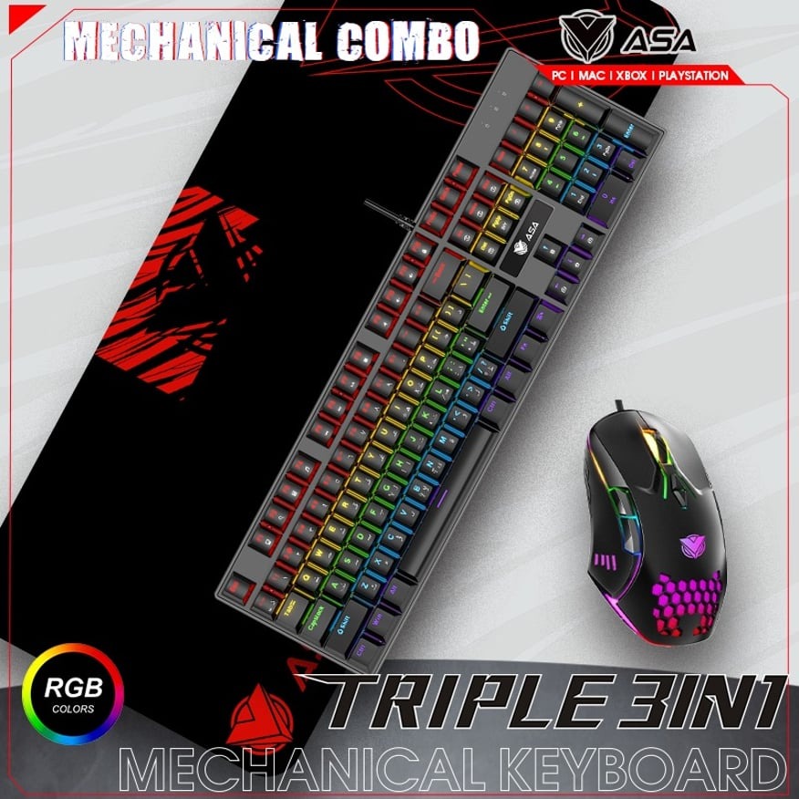 ASA Triple Combo – Gaming set includes keyboard, mouse, and mouse pad. Perfect for gamers looking for a complete starter pack with matching design and performance.
