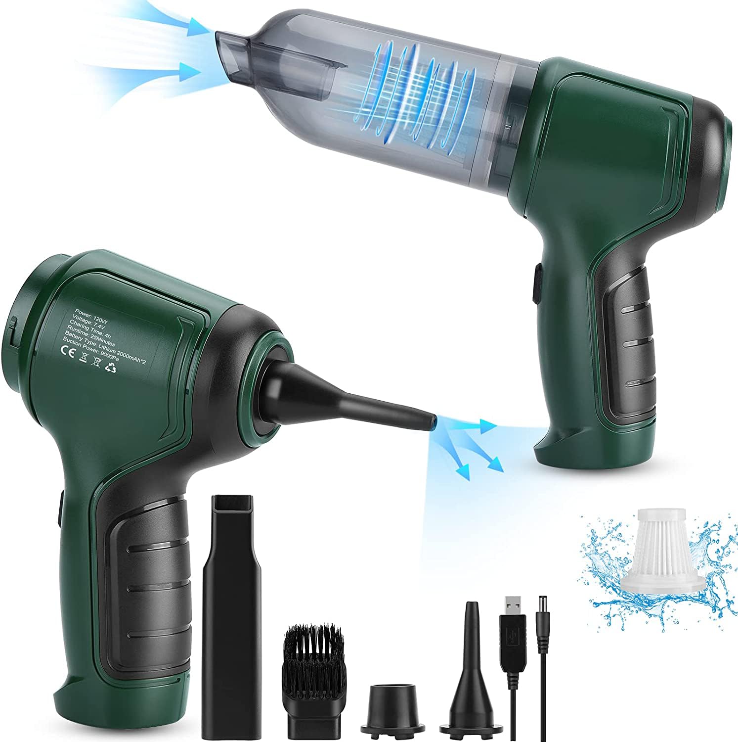مكنسة كهربائية محمولة متعددة الوظائف بلون أخضر، لتنظيف السيارة أو المكتب.